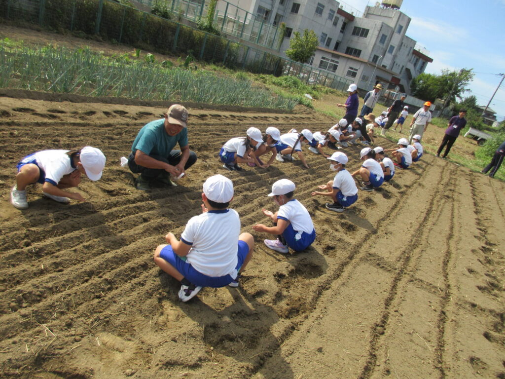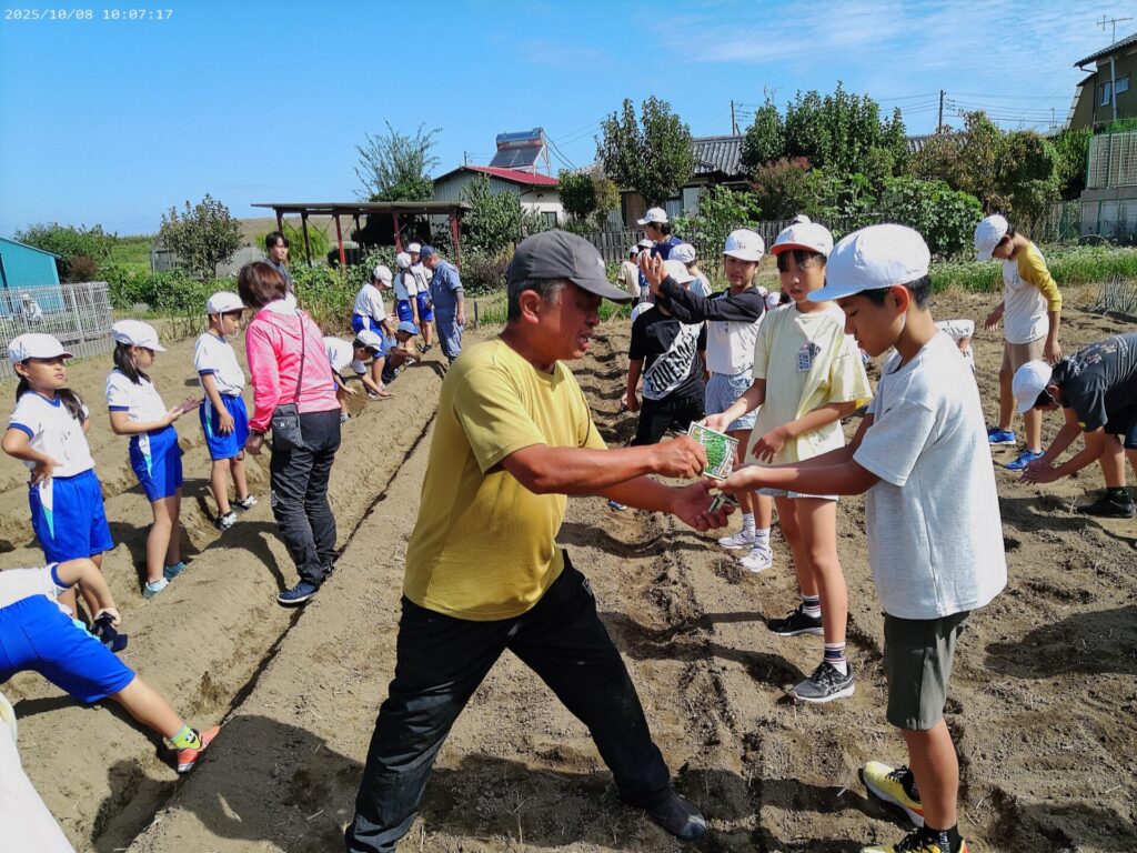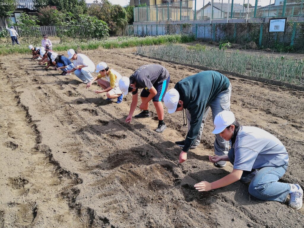 地域の「畑の先生」にご指導いただきながら、種をまくことができました。