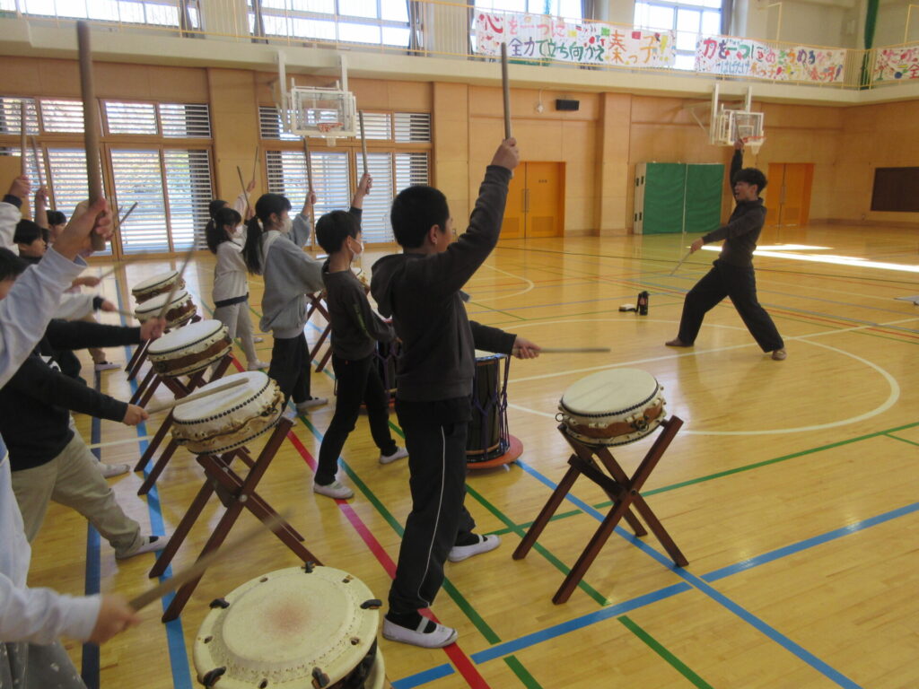 4年「和太鼓体験」 2025年12月12日 最終更新日時 : 2025年12月12日 kumagaya_contribute 今日は和太鼓体験がありました。はじめに和太鼓の持つ歴史を教えていただき、材料や音色の違いなどを知ることもできました。 みんなで演奏もしました!どんっと体の芯まで響く音に、体も思わずノリノリ。とても貴重で、楽しい時間でした。